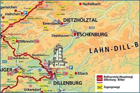Ansprechpartner im Rathaus der Gemeinde Eschenburg: Frau Debre, 02774 / 915-227 (dort sind auch Wanderkarten und weitere Auskünfte erhältlich)