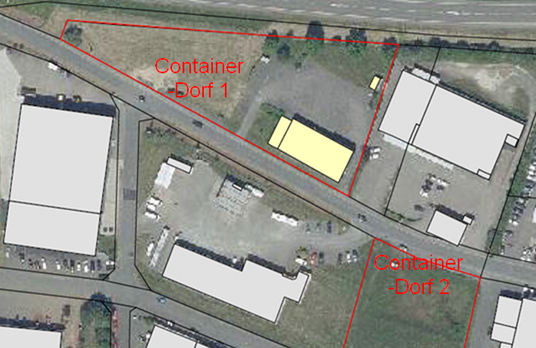 Container-Dorf 1 (Eiershäuser Straße 47) und Container-Dorf 2 (Eiershäuser Straße 44) entstehen in zentraler Lage: