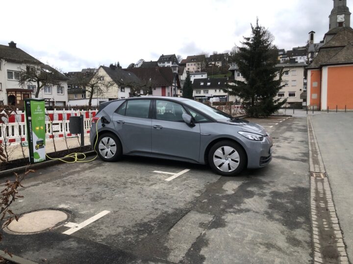 Einfach über eine der gängigen RFID-Karten oder eine App freischalten oder den QR-Code scannen – und los geht‘s. Die neue Elektro-Tankstelle in Eschenburg lässt sich leicht starten. Die Ladesäule steht in der Kirchstraße, am Marktplatz-Versorgungsgebäude, und ist von der Gemeinde im Rahmen der Neugestaltung des Ortskernes geschaffen worden. Die Parkplatz-Markierungen stehen für den „Endspurt“ ebenso aus wie das Geländer und die Plattform an der Dietzhölze, aber das „Tanken“ läuft bereits reibungslos. An der grünen Tankstelle sind zwei Mennekes-Steckdosen angebracht, die jeweils 22 kW Leistung bringen. Beim Kirchgang, Einkauf oder Besuch der Eisdiele lässt sich dort ein Elektrofahrzeug auftanken. Die Ladeinfrastruktur ist ein Baustein für die „Neue Mitte“ und Aktivitäten der Klimaschutz-Kommune Eschenburg.