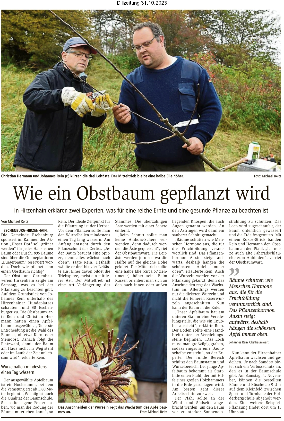 Der Verein zur Förderung des Obstbaues, der Garten- und Landschaftspflege e. V. (kurz: Obst- und Gartenbauverein Hirzenhain lädt ein zu einem Obstbaumschnittkurs am 24. Februar. Ab 14 Uhr soll der Schnitt an jungen Bäumen jungen Obstbäumen gezeigt werden.