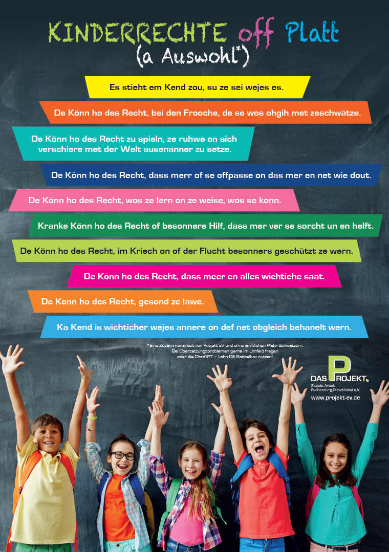 - Plakat zum Mitnehmen: Kinderrechte „off Platt“ (Das Projekt e. V.)